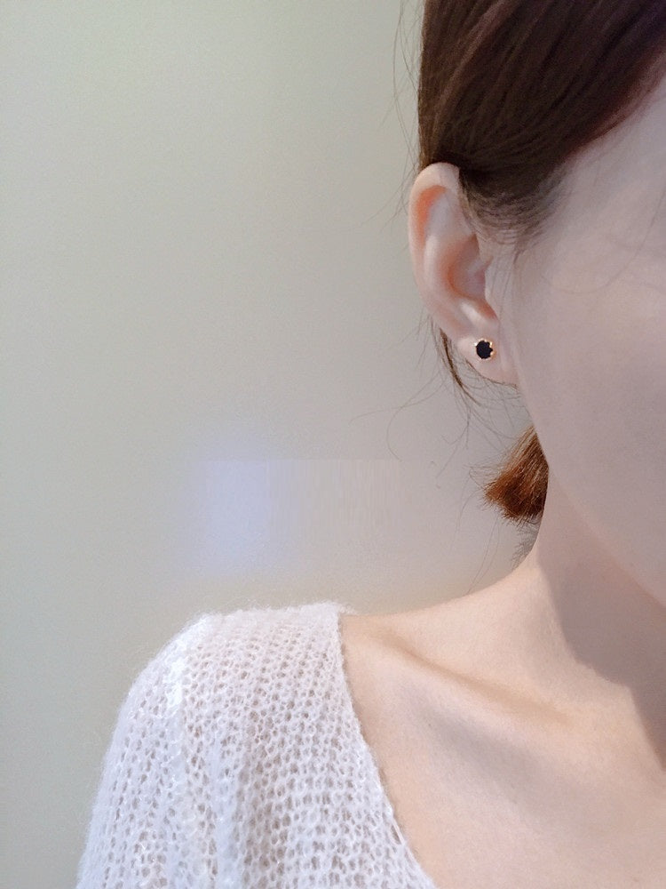 Black Round Mini Ear Studs Women's Sterling Silver Ear-caring